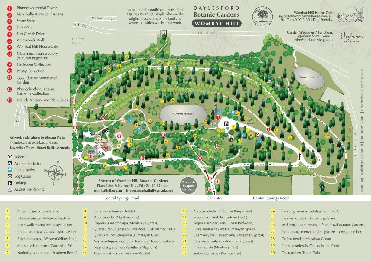 Today, it grows some of the rarest, largest and finest conifers in Victoria, along with majestic, historic deciduous trees and an extensive collection of unusual cool climate garden plants. An impressive variety of choice Hellebores thrives in the Gardens.